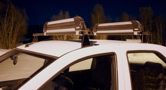 Компания выпускает два вида лыжных креплений, различающихся только шириной рабочей поверхности - 42 см или 62 см. Изделия устанавливаются на поперечные дуги любого багажника на крыше автомобиля. В поставляемом собранном виде лыжные крепления укомплектованы для монтажа в Т-паз аэродинамической дуги. Для установки на прямоугольные поперечины 20х30 мм в комплект входят необходимые переходники. Изделие можно смонтировать на багажнике в любом удобном для Вас месте, для этого необходино просто разместить его на дугах и завинтить два винта под пластиковыми концевиками специальным ключом из комплекта. Крепления представляют собой два профиля из анодировнного алюминия, соединенные пластиковыми концевиками, в которых размещены кнопки открывания устройства и замок-секретка для предотвращения раскрывания оборудования на ходу, а также несенкционированного доступа к перевозимому. Рабочая поверхность багажника для лыж образована двумя резиновыми пустотелыми элементами, вмонтированными в алюминиевые профили, которые и фиксируют, осторожно и надежно, ваш инвентарь.