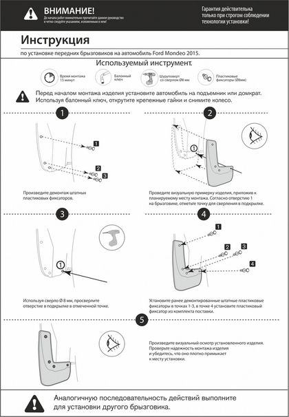 | Комплектация | 2 брызговика, крепеж, инструкция, упаковка |