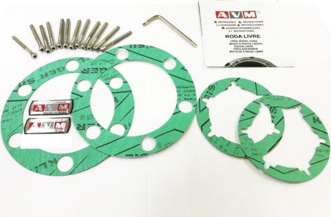 Содержит комплект уплотнительных прокладок и стяжных винтов на два колёсных хаба. Для хабов AVM-410, AVM-445 и AVM-423.