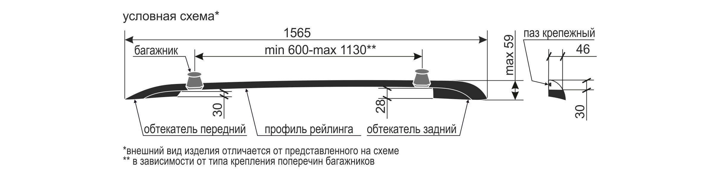 Рейлинги: алюминиевый профиль c толщиной стенки 2.5 мм, ABS-пластик. Поперечины: сталь в пластиковой оплетке